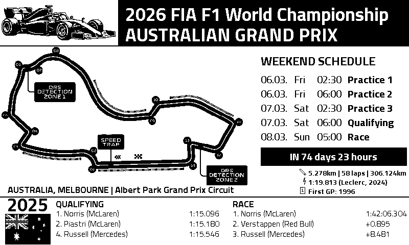 Generate 800×480 1-bit BMP images for E-Ink displays showing F1 race schedules.